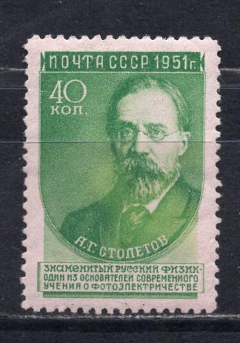 Почтовые марки. СССР, 1951 г. №1630. Б/К. 22,5*33 Ученые : Столетов.