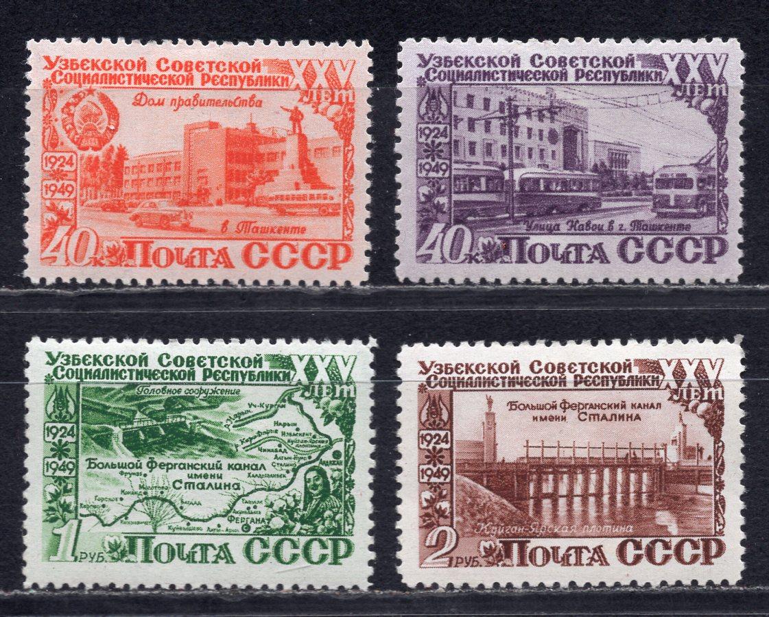 Почтовые марки. СССР, 1950 г. №1486, 1487, 1488, 1489. Узбекская ССР. (Кат: 700 руб)