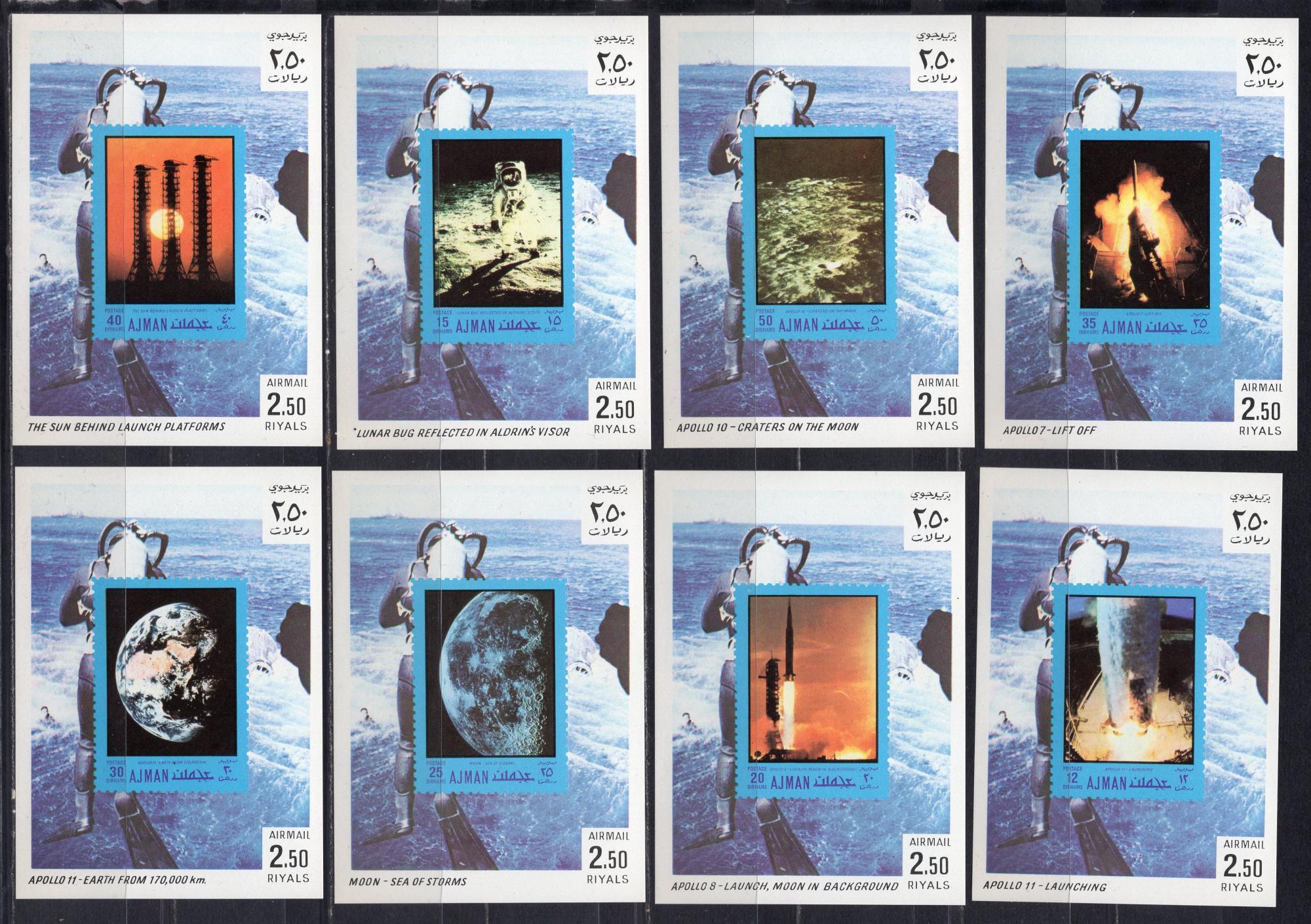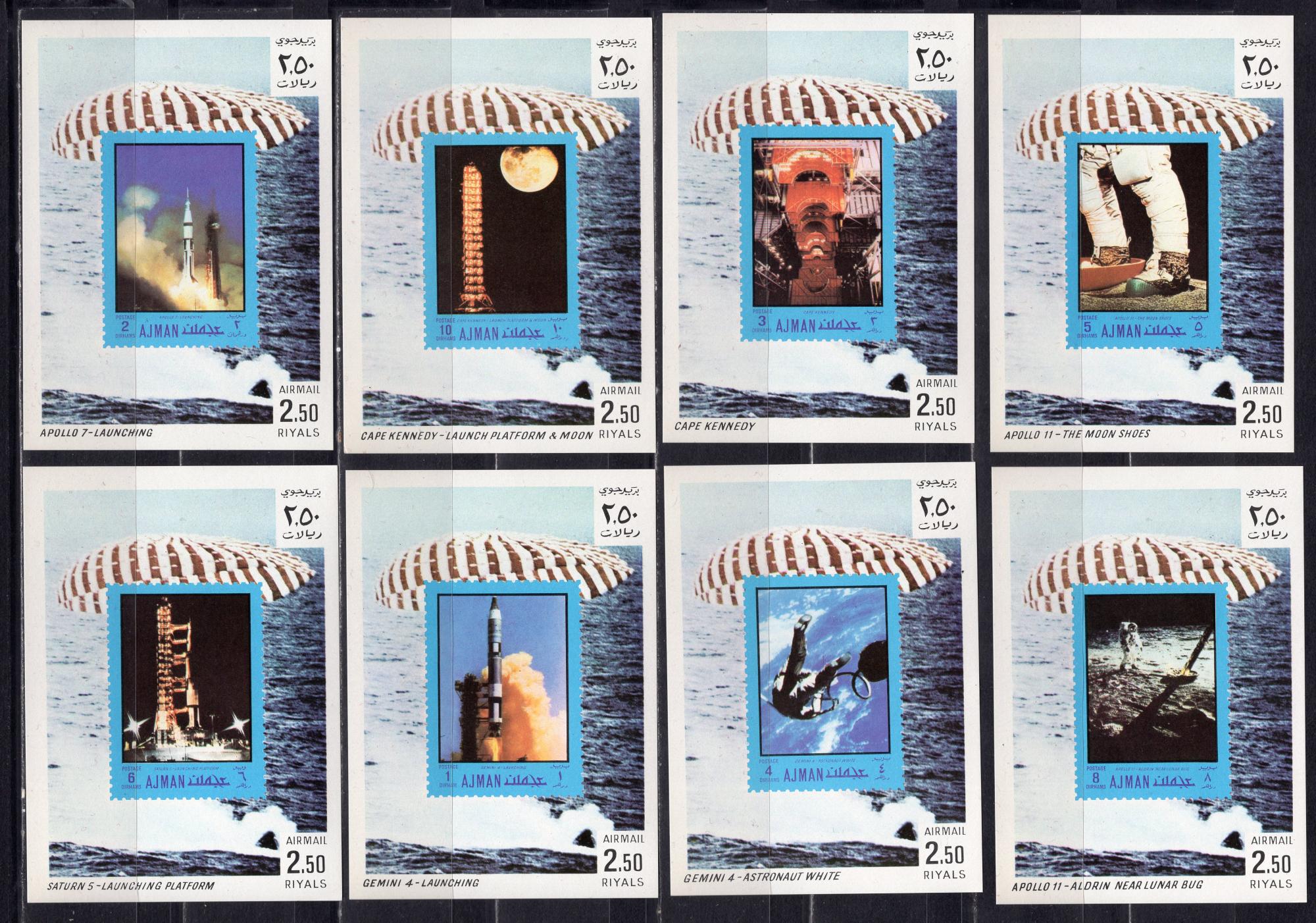 Почтовые марки. Аджман, 1970 г. №593-608. Люкс блоки. Космос. Программа Аполлон. Комплект. Отличное состояние. (Mi 40.0 e) Безз.