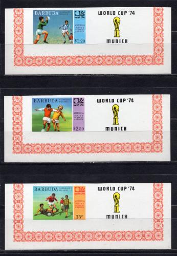 Почтовые марки. Барбуда. 1974. Футбол. №175-177В. Беззубц. + купоны