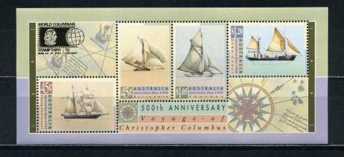 Почтовые марки. Австралия. 1992г. Колумб. Корабли. Надпечатка. Блок №13-1.