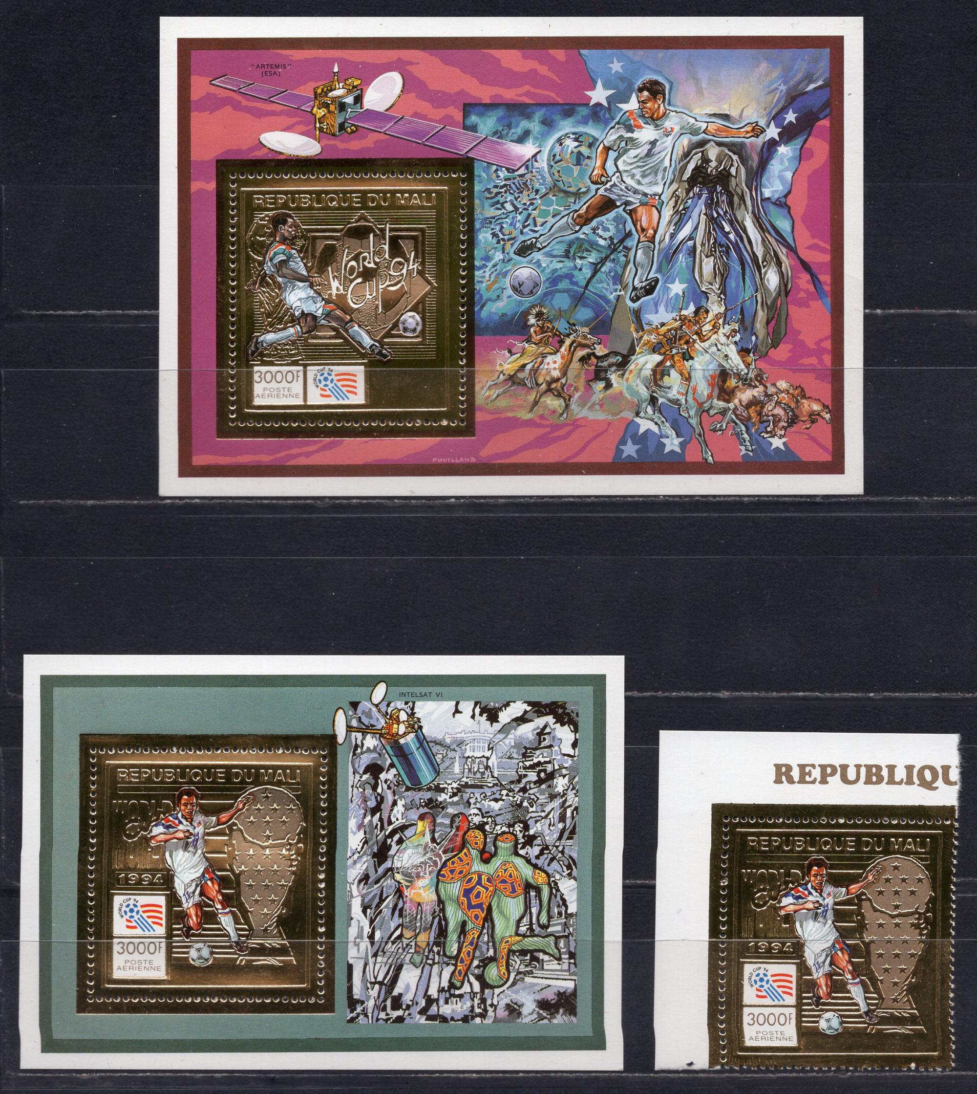 Почтовые марки. Мали, 1994 г. №1201, Бл.40-41. Футбол. Фольга. Золото. (Mi 61.0 e)