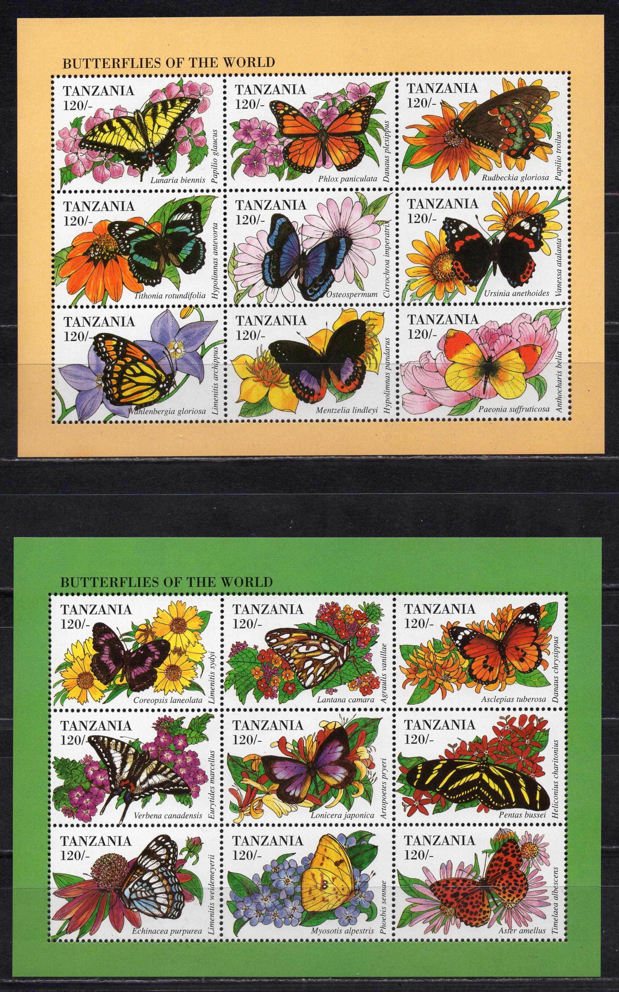 Почтовые марки. Танзания, 1993 г. №1888-1905 (МЛ), Бл. 264-265. Бабочки. (Mi 30.0 e)
