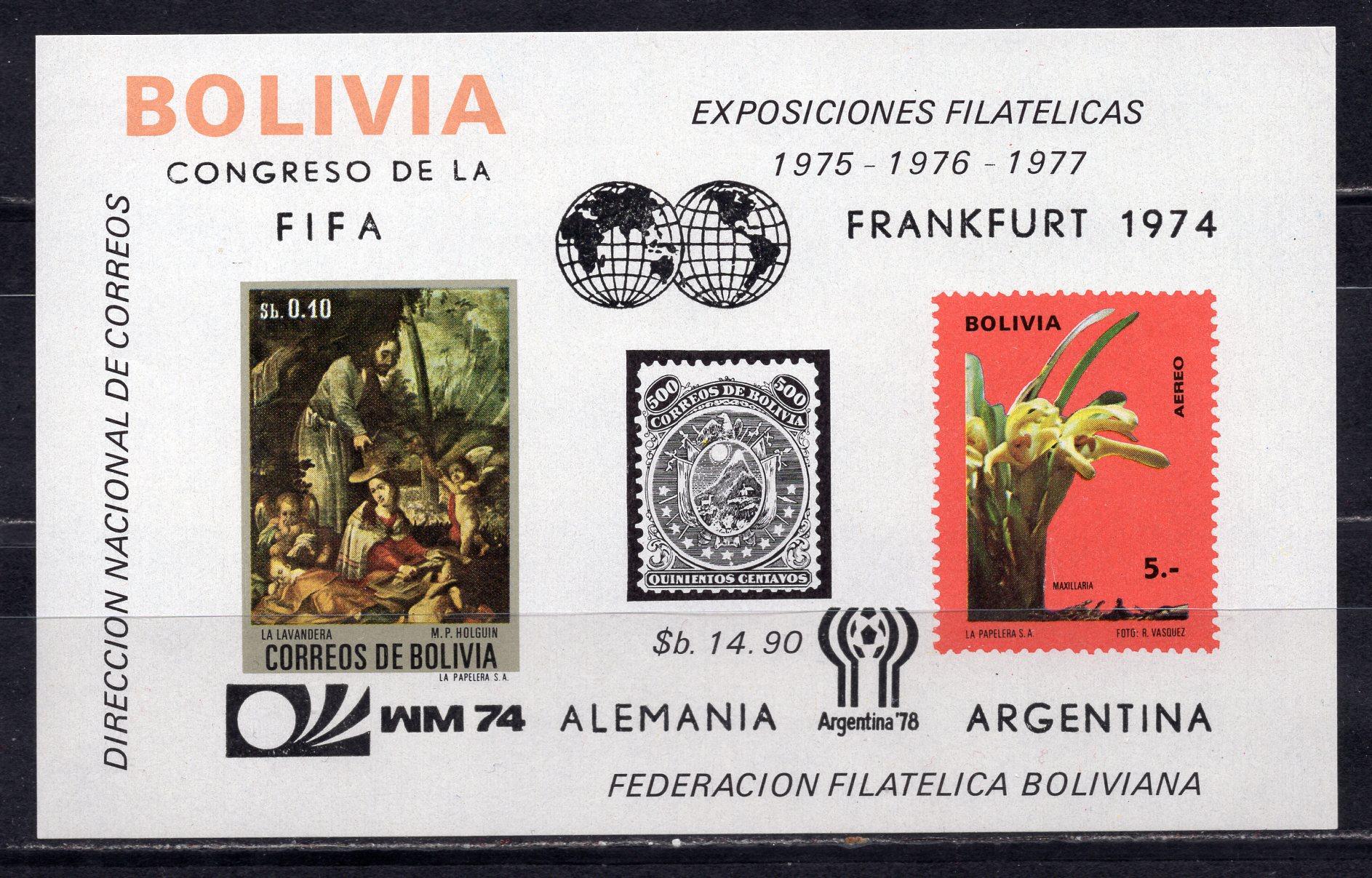 Почтовые марки. Боливия, 1974 г. Бл. 44. Футбол. (Mi 160.0 e)