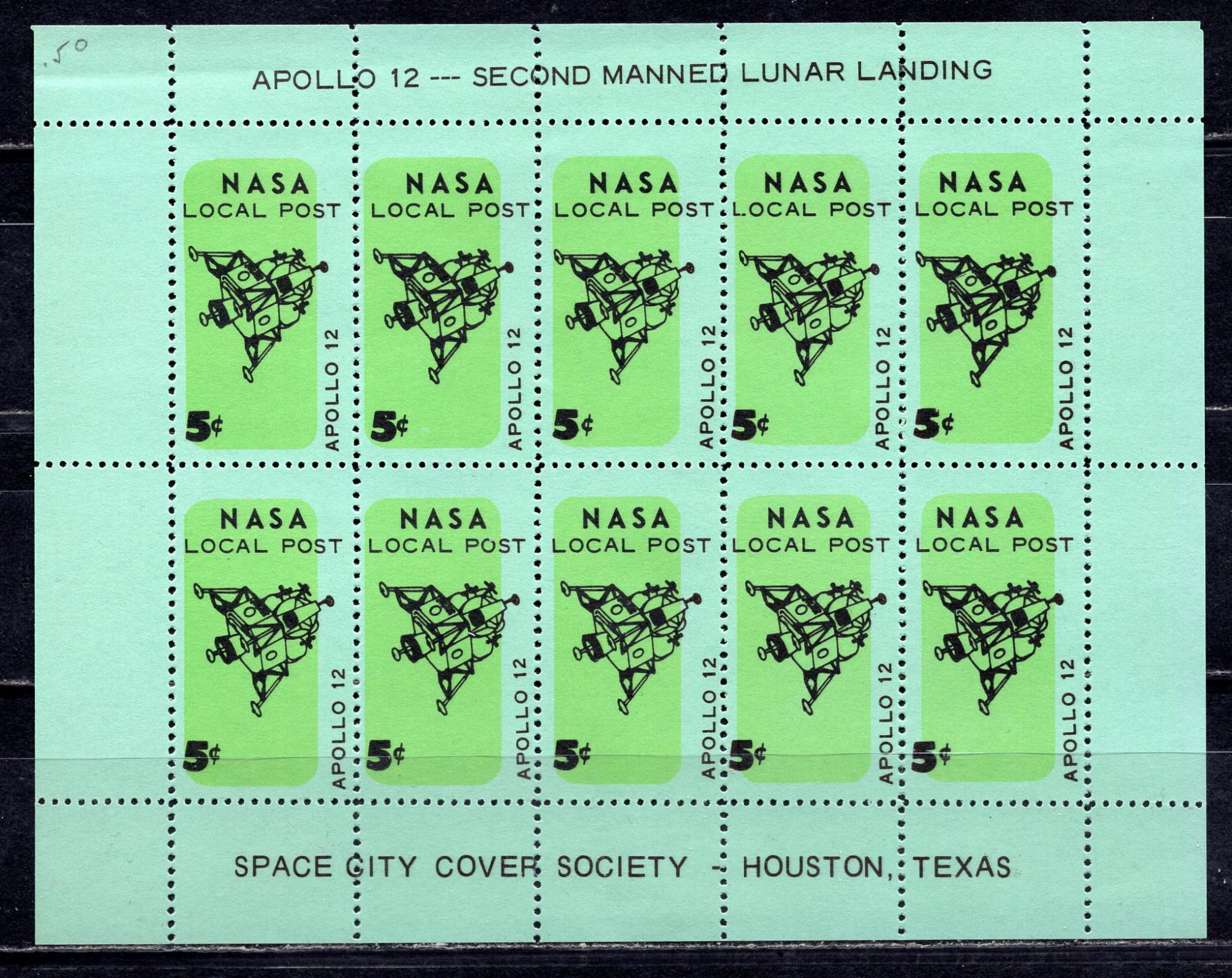 Почтовые марки. США. 1972 г. Космос. Локальная почта НАСА. Апполон-12. Лист.