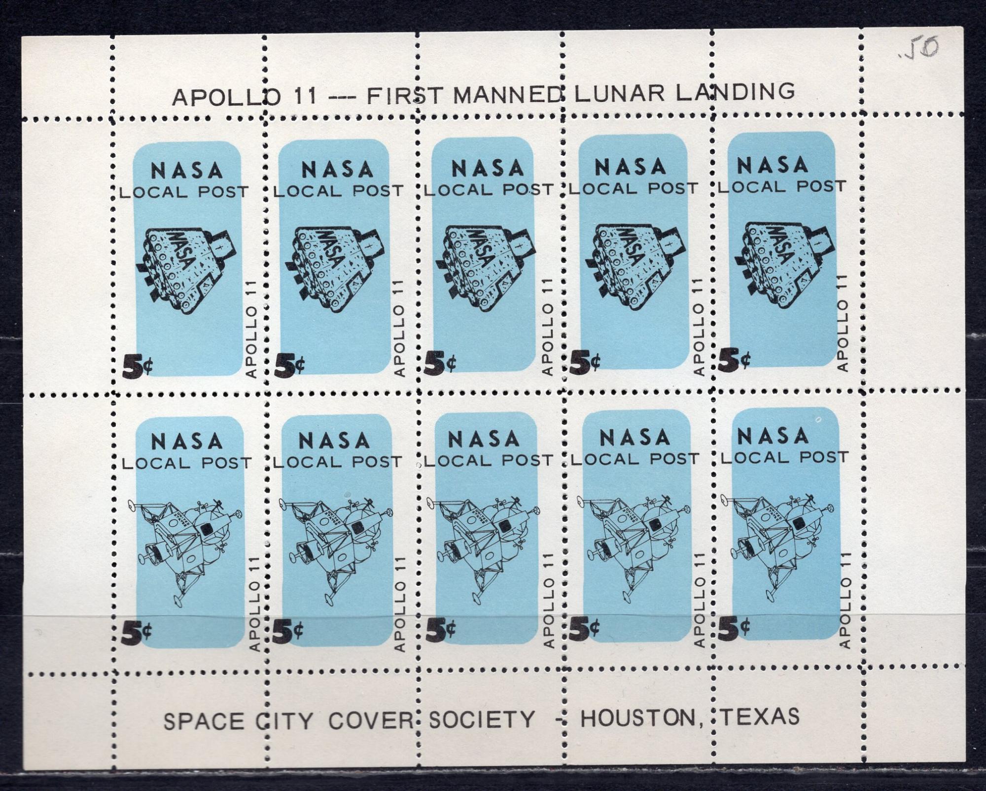 Почтовые марки. США. 1972 г. Космос. Локальная почта НАСА. Апполон-11. Лист.