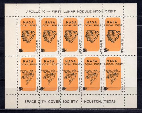 Почтовые марки. США. 1972 г. Космос. Локальная почта НАСА. Апполон-10. Лист.