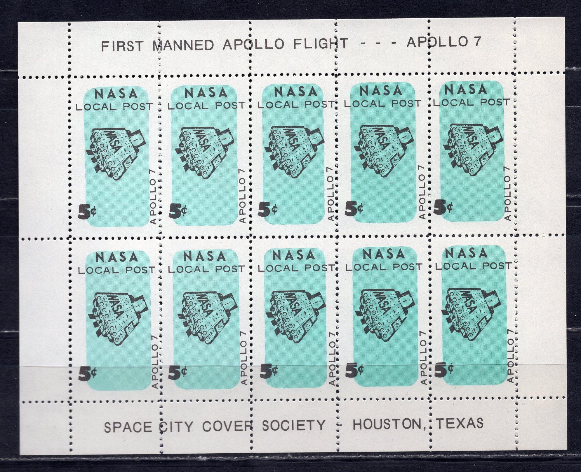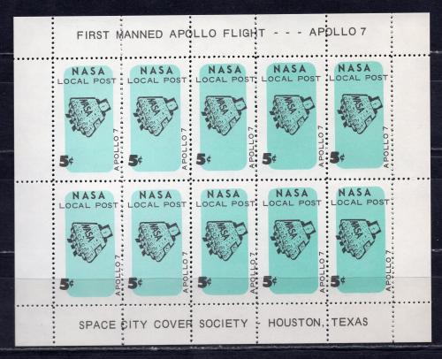 Почтовые марки. США. 1972 г. Космос. Локальная почта НАСА. Апполон-7. Лист.