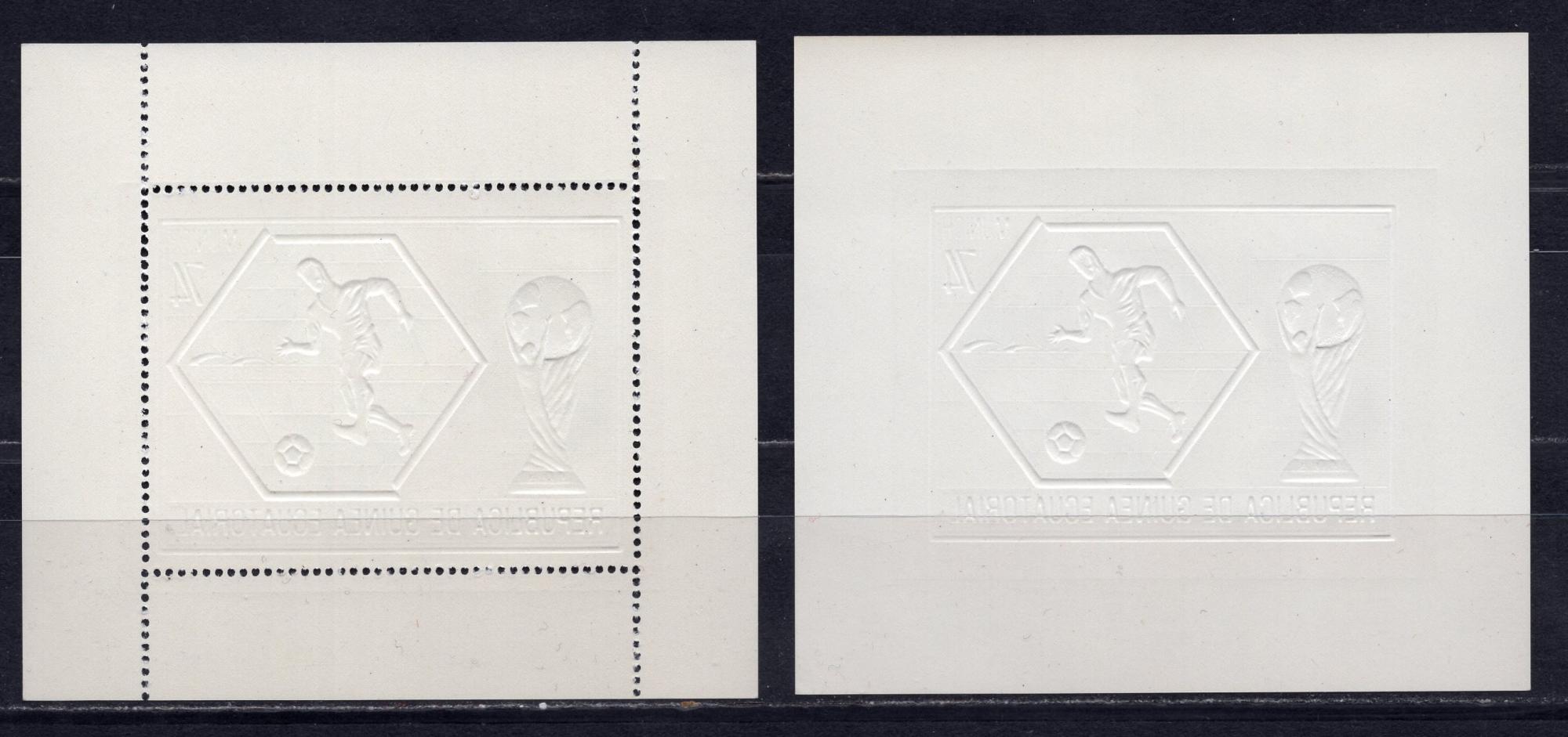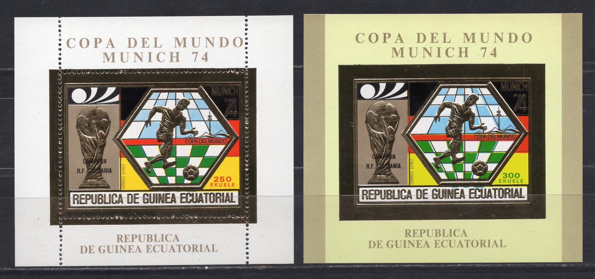 Почтовые марки. Экваториальная Гвинея, 1974 г. Люкс-блоки. Бл. 124: с надпечаткой. Бл. 124 беззубц., с надпечаткой. Фольга. Золото. Футбол.