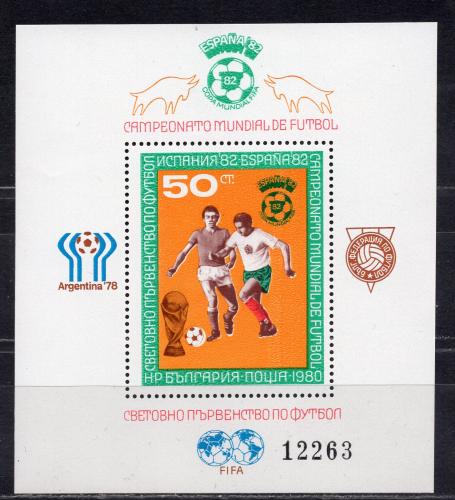 Почтовые марки. Болгария, 1980 г. Бл. 104. Футбол. (Mi 30.0 e)