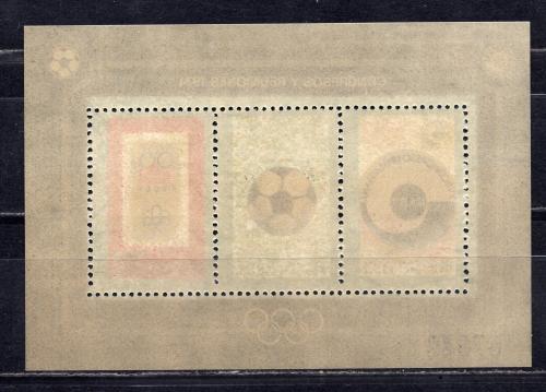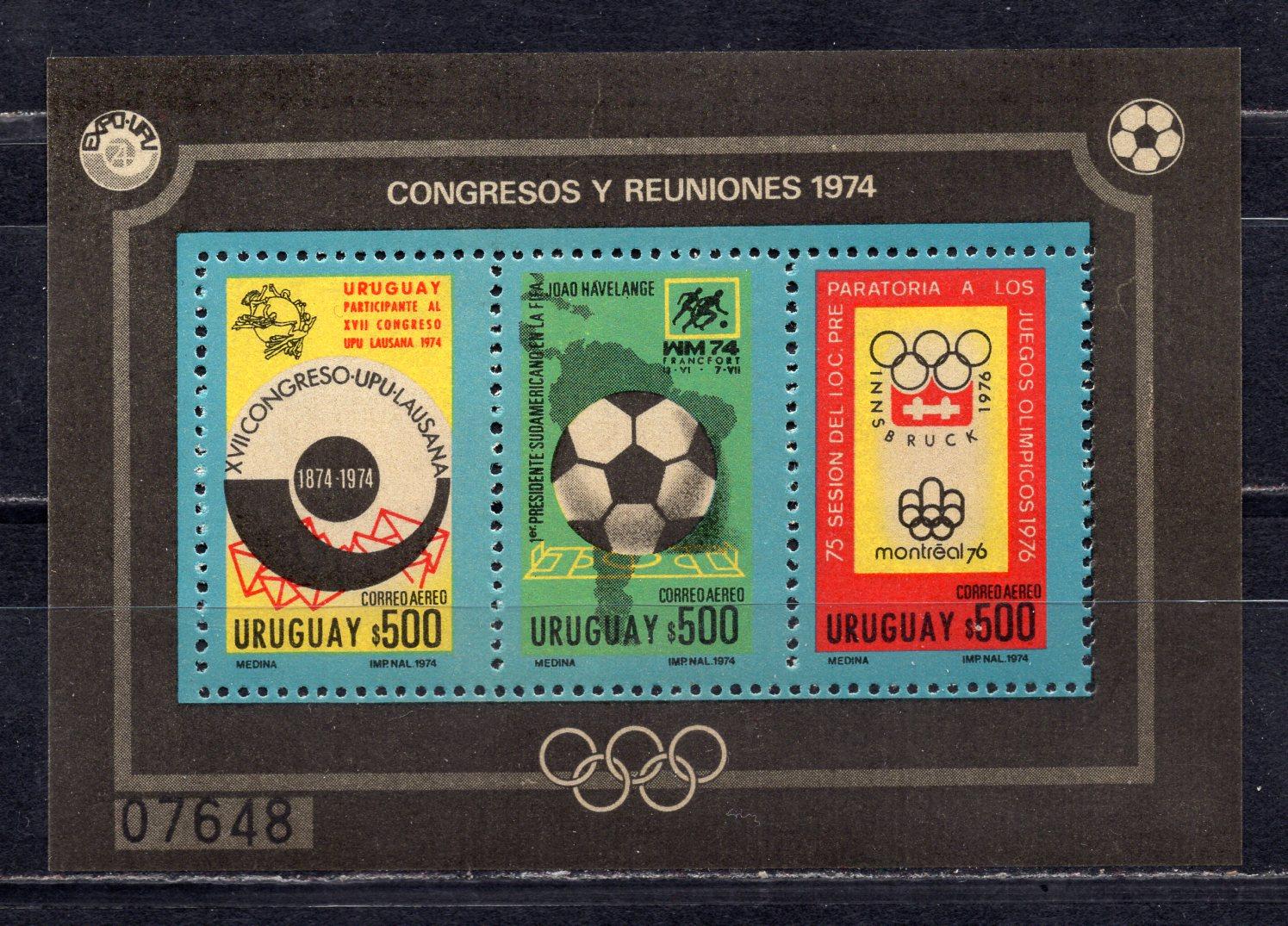 Почтовые марки. Уругвай, 1974 г. Бл. 21. Футбол. Ол. Игры. (Mi 70.0 e)