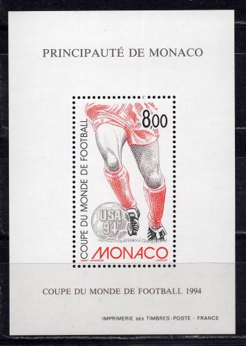Почтовые марки. Монако, 1994 г. №2183. Блок. (Mi 120.0 e) Футбол.