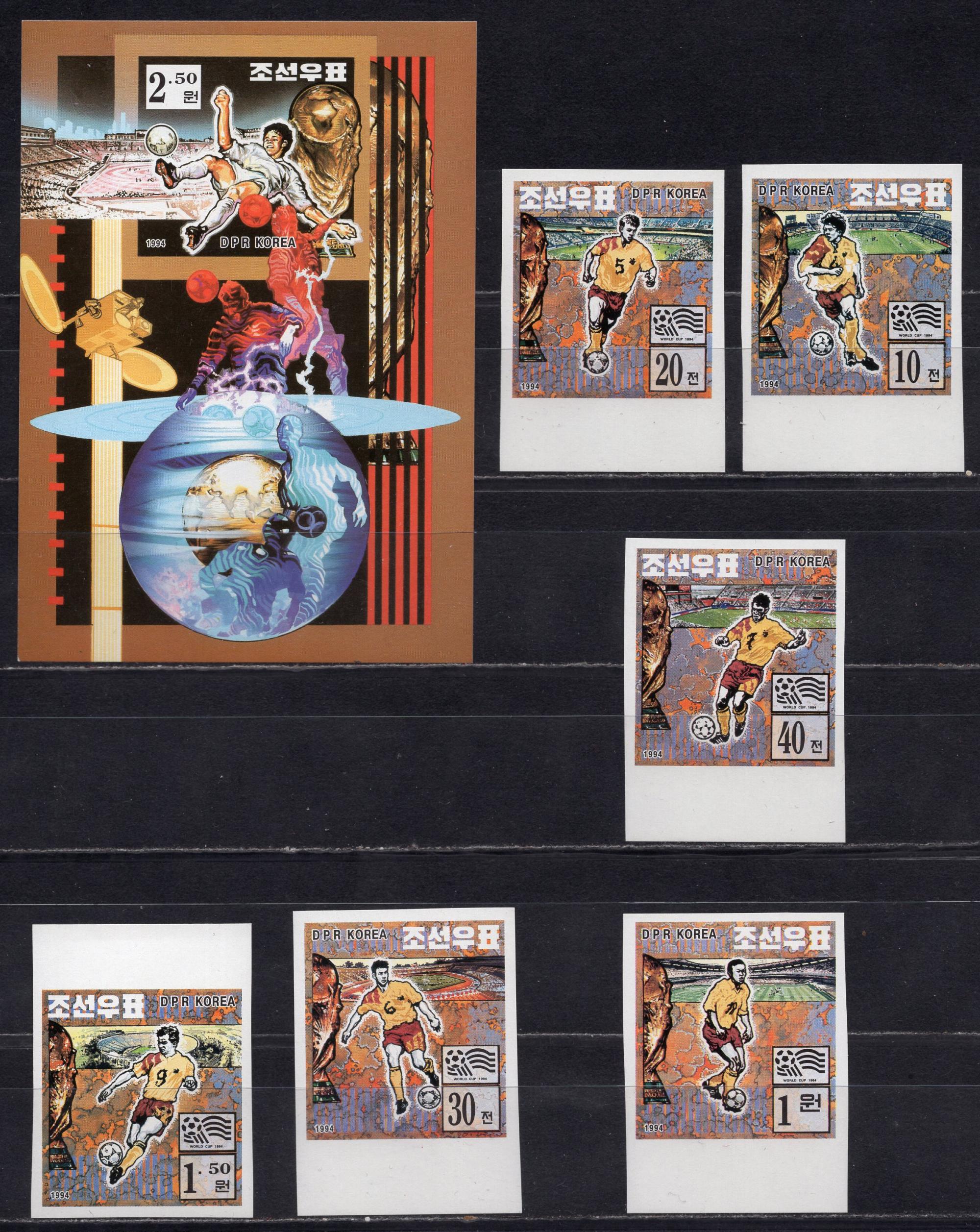 Почтовые марки. КНДР, 1994 г. №3642В-3647В, Бл. 311В. Футбол.