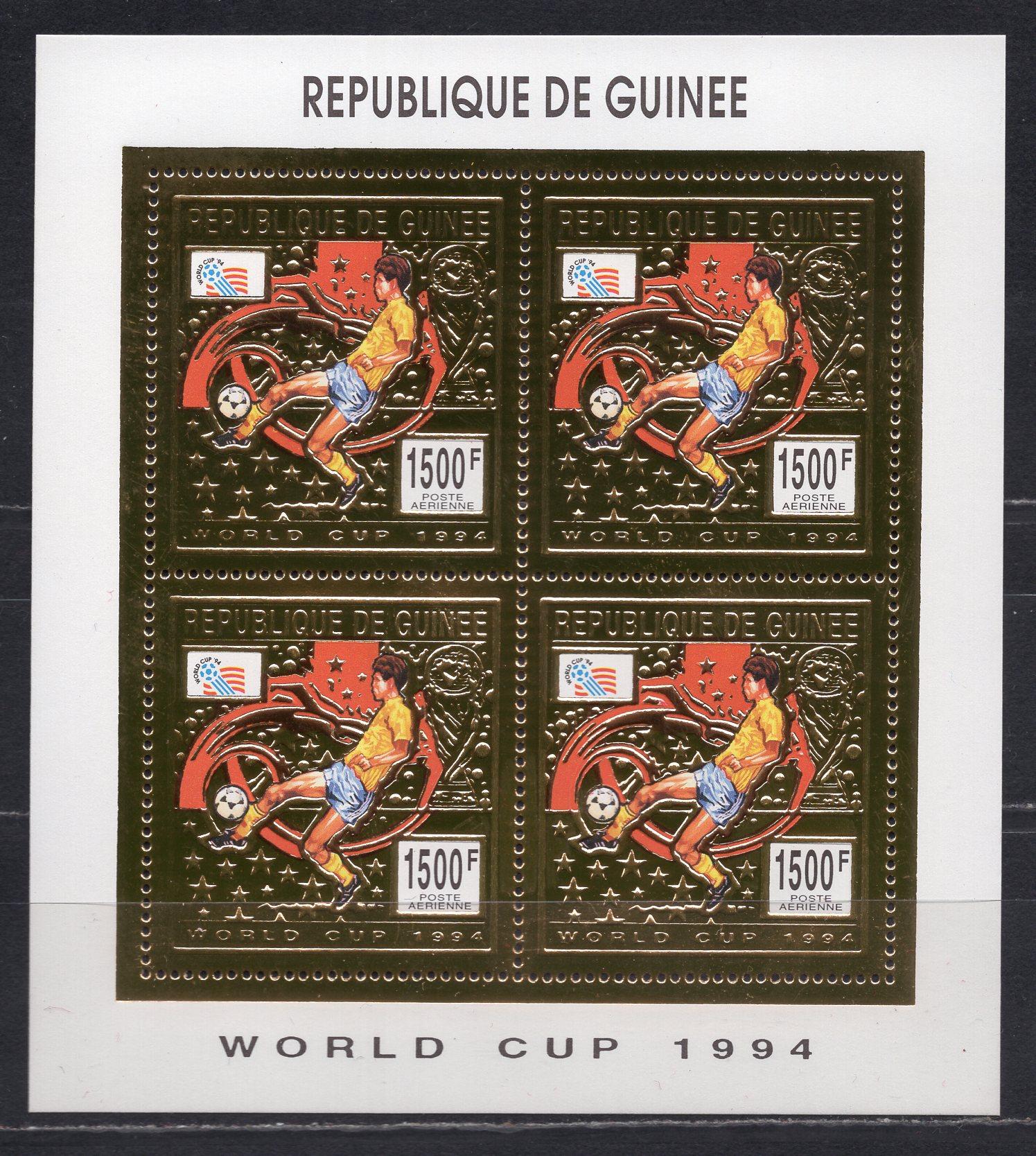 Почтовые марки. Гвинея, 1993 г. №1463А. МЛ. Футбол. (Mi 60 e). Фольга. Золото