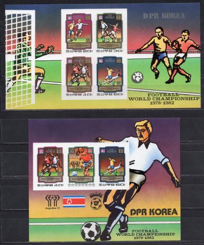 Почтовые марки. КНДР, 1980 г. Бл. 78В-79В. Футбол. Безз.