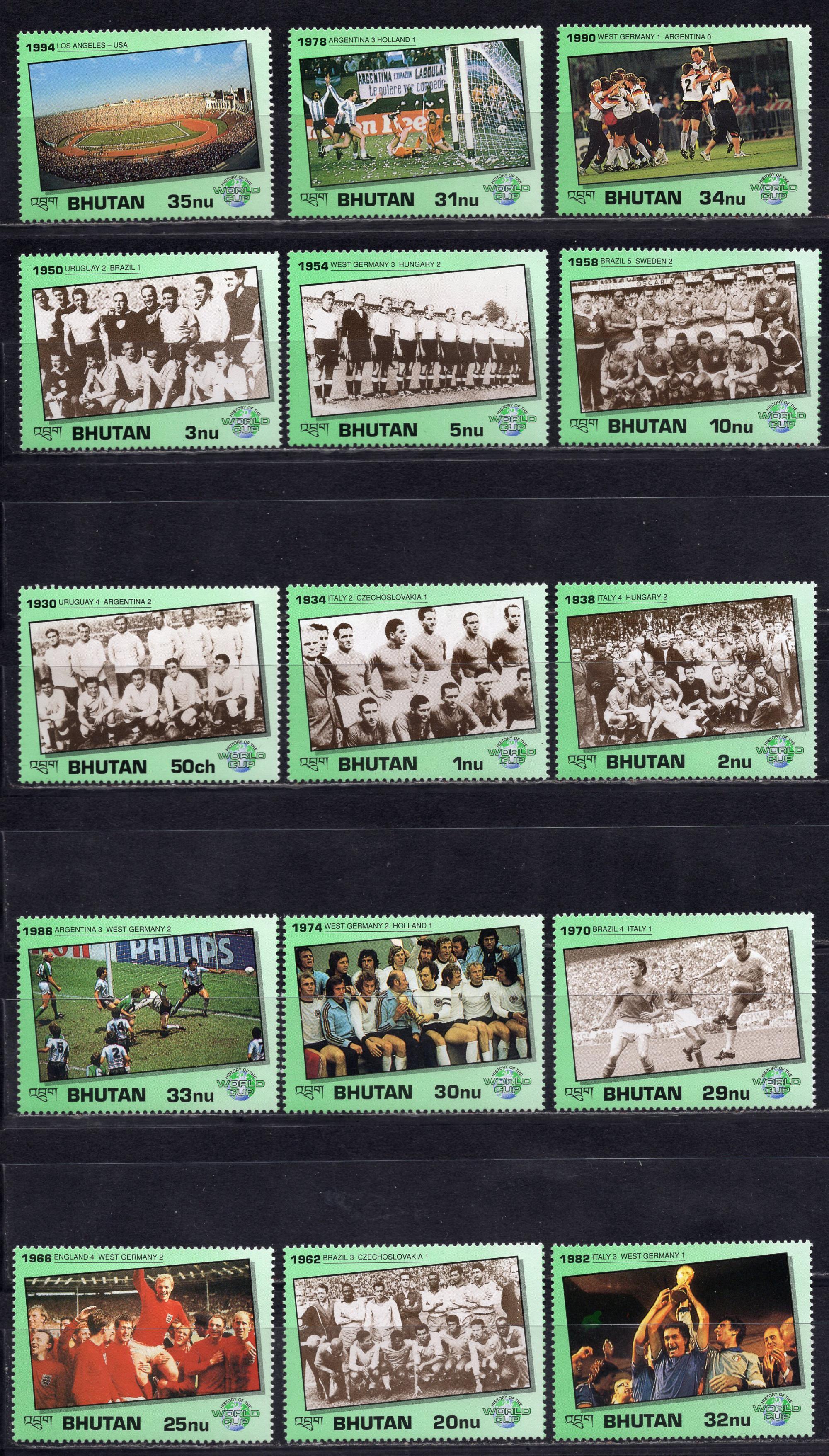 Почтовые марки. Бутан, 1991 г. №1444-1458. Футбол. Страны - чемпионы. (Mi 55.0 e)