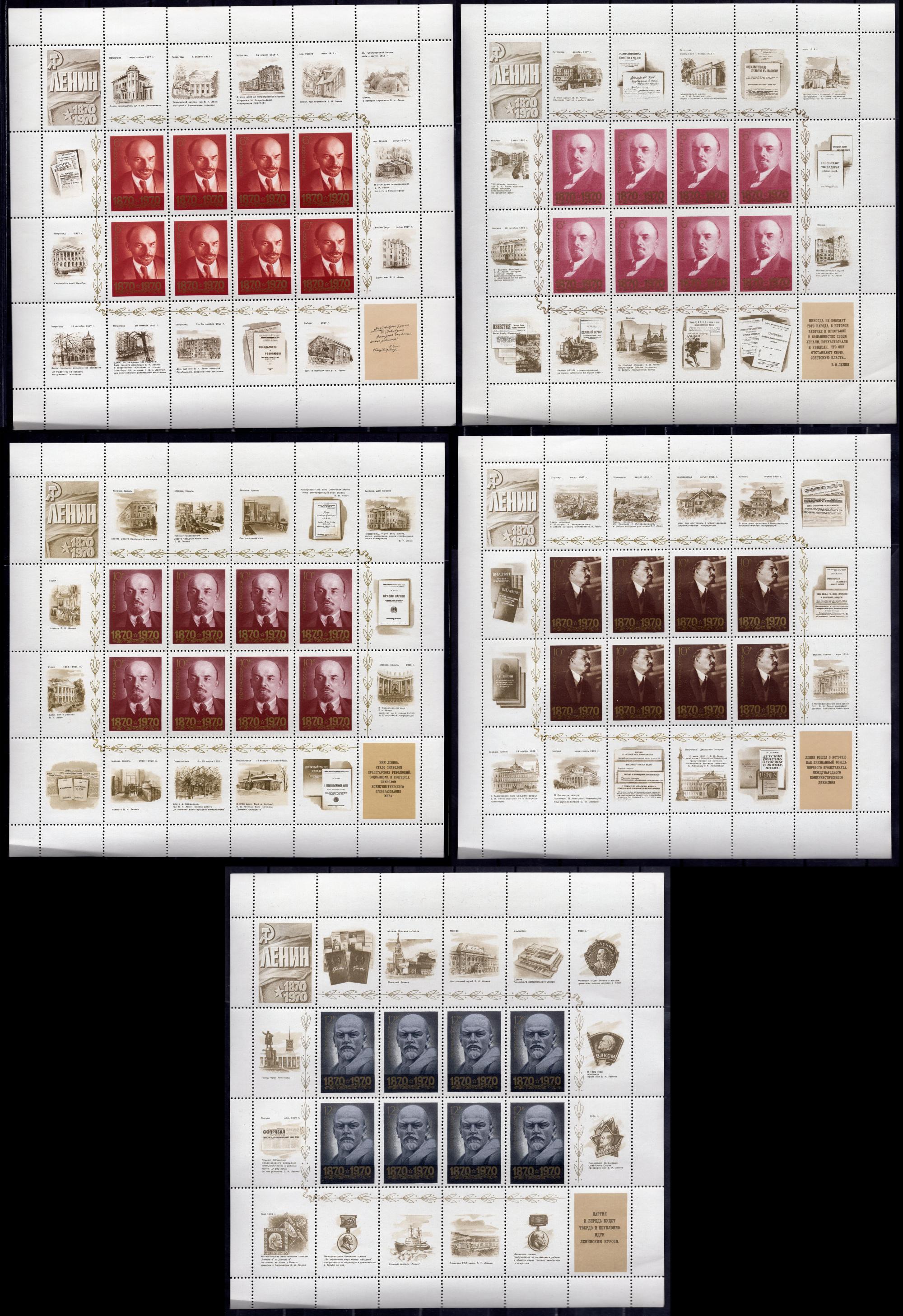 Почтовые марки. СССР. 1970 г. В.И. Ленин. №3879-3888. ЛИСТЫ. Комплект.