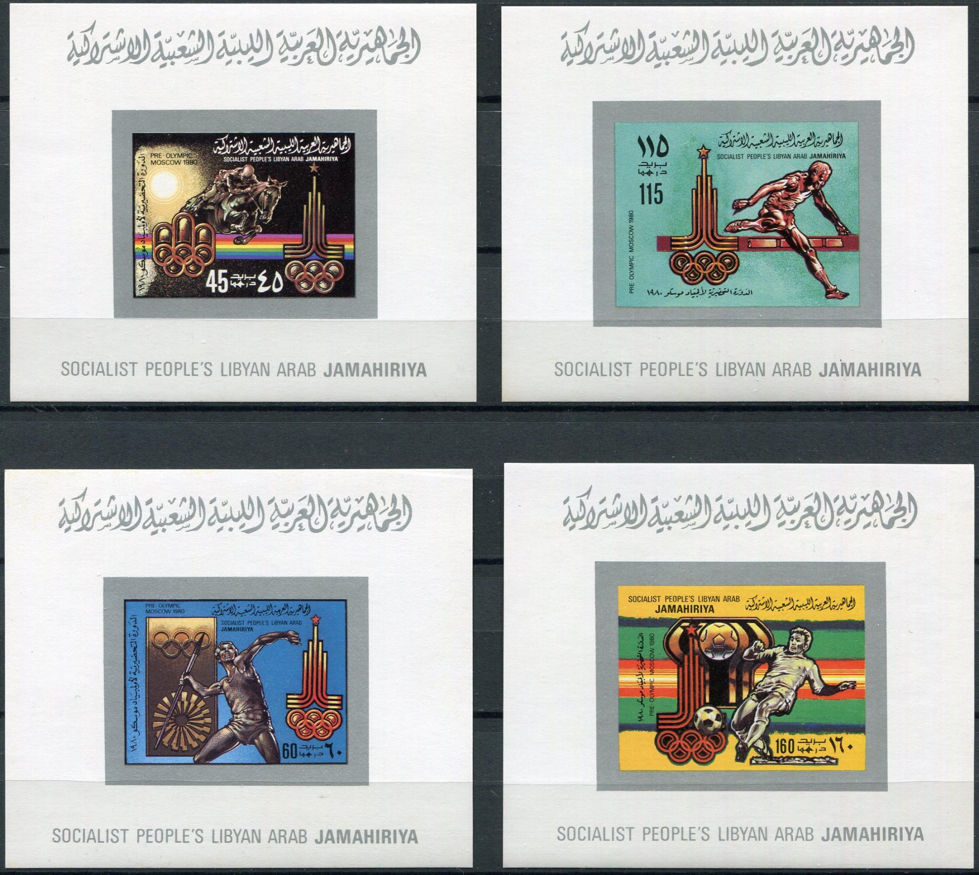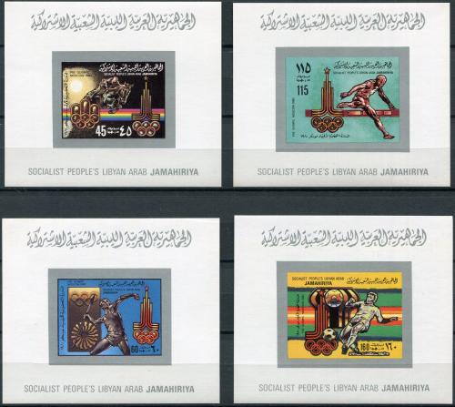Почтовые марки. Ливия. 1979г. Олимп. Игры в Москве. Комплект. Люкс-блоки. №767-770 delux. Беззубц.