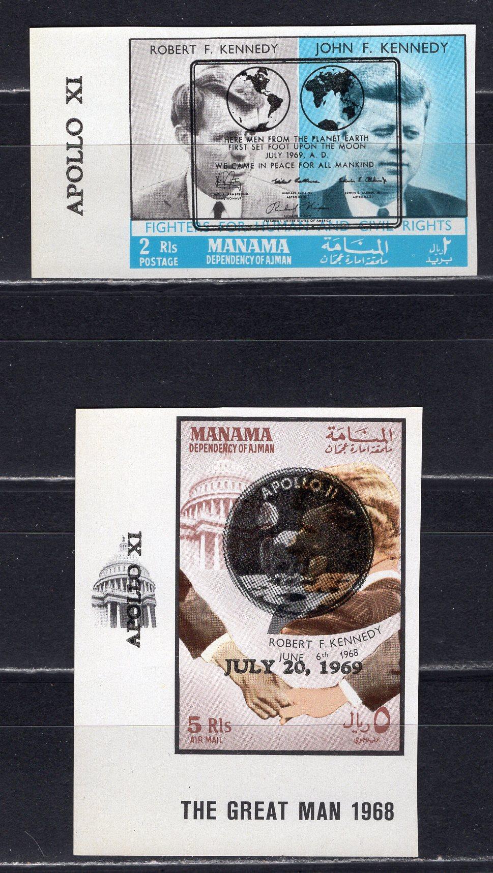 Почтовые марки. Манама. 1968г. Космос. Кеннеди. Надпечатка чёрная. №105в-106в. Беззубц.