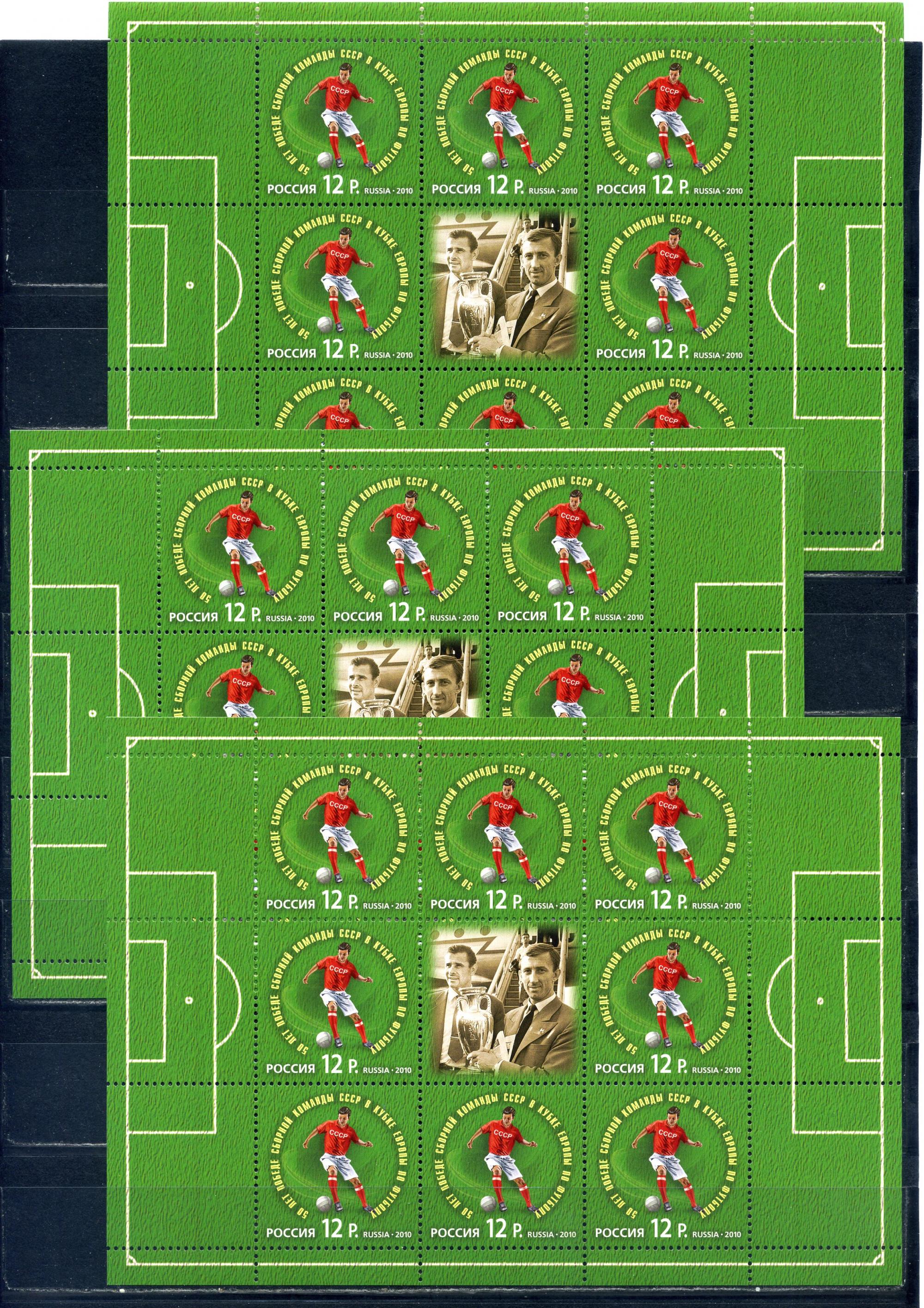 Почтовые марки. Россия. 2010г. Футбол. №1458. Лист. 3 Штуки. (см.состояние)