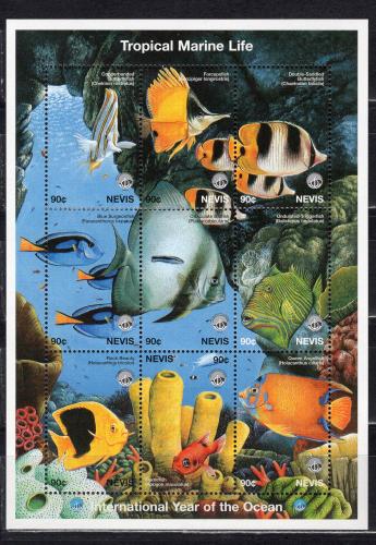 Почтовые марки. Невис. 1998г. Подводный мир. №1251-1259. МЛ.