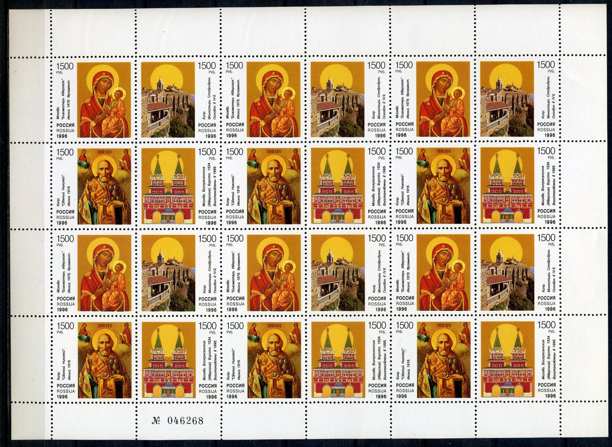 Почтовые марки. Россия. 1996г. Культура православия. №321-324. ЛИСТ.