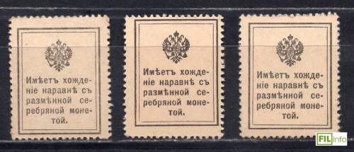Почтовые марки. Российская империя, 1915 г. Марки-деньги. Е1-Е3.