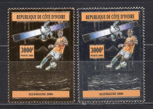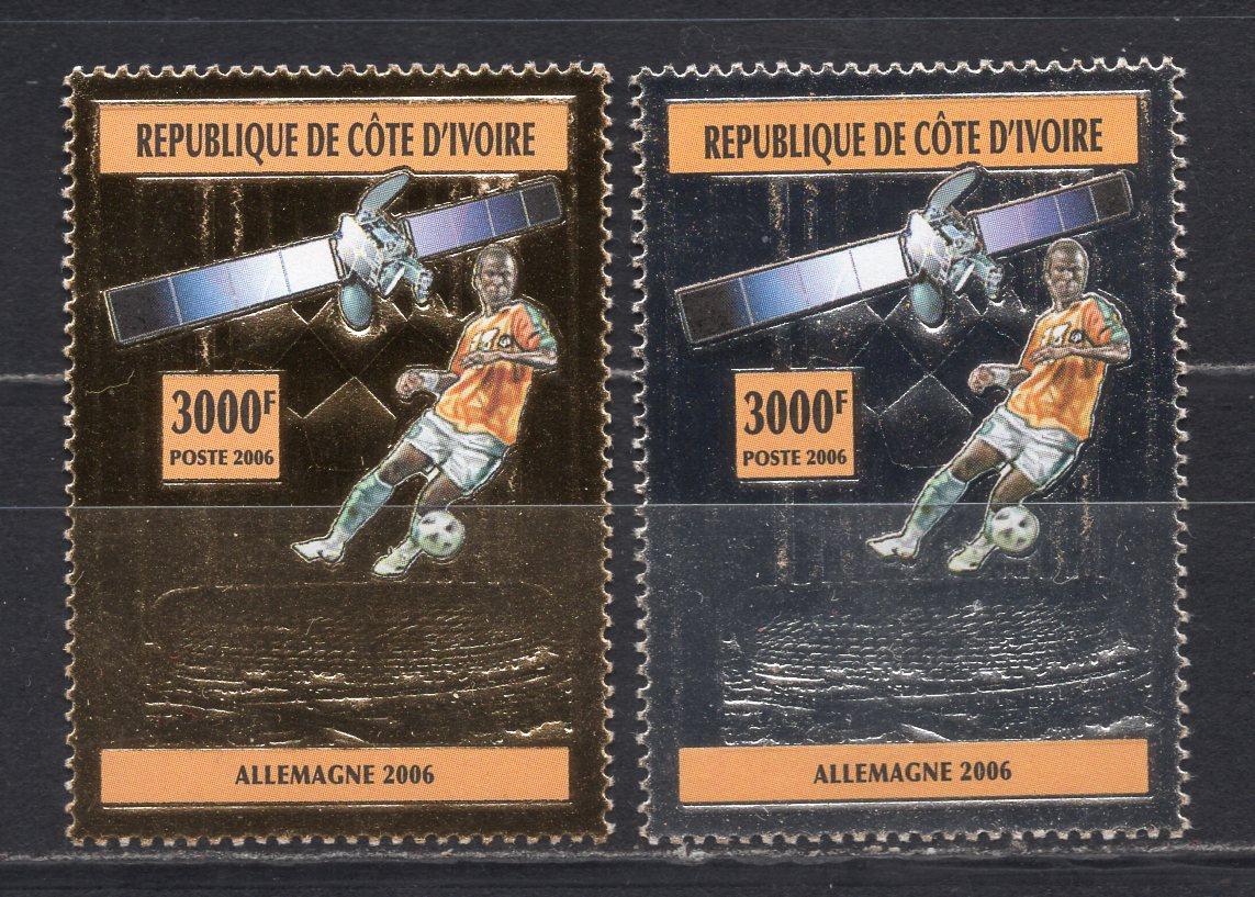 Почтовые марки. Кот-д-Ивуар, 2005 г. №1450-1451. Футбол. (Mi 22.0 e) Фольга. Золото, серебро.