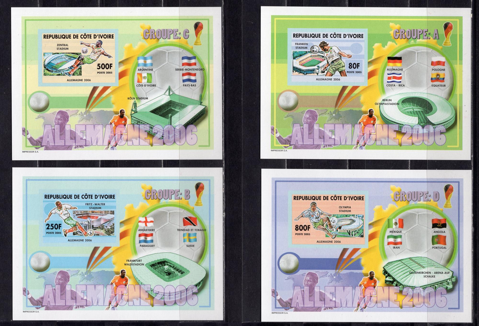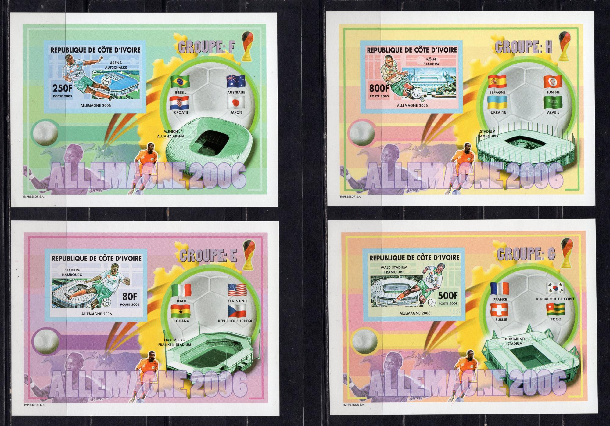 Почтовые марки. Кот-д-Ивуар, 2006 г. Бл. 143В-150В. Футбол. Безз. (Mi 70.0 e)