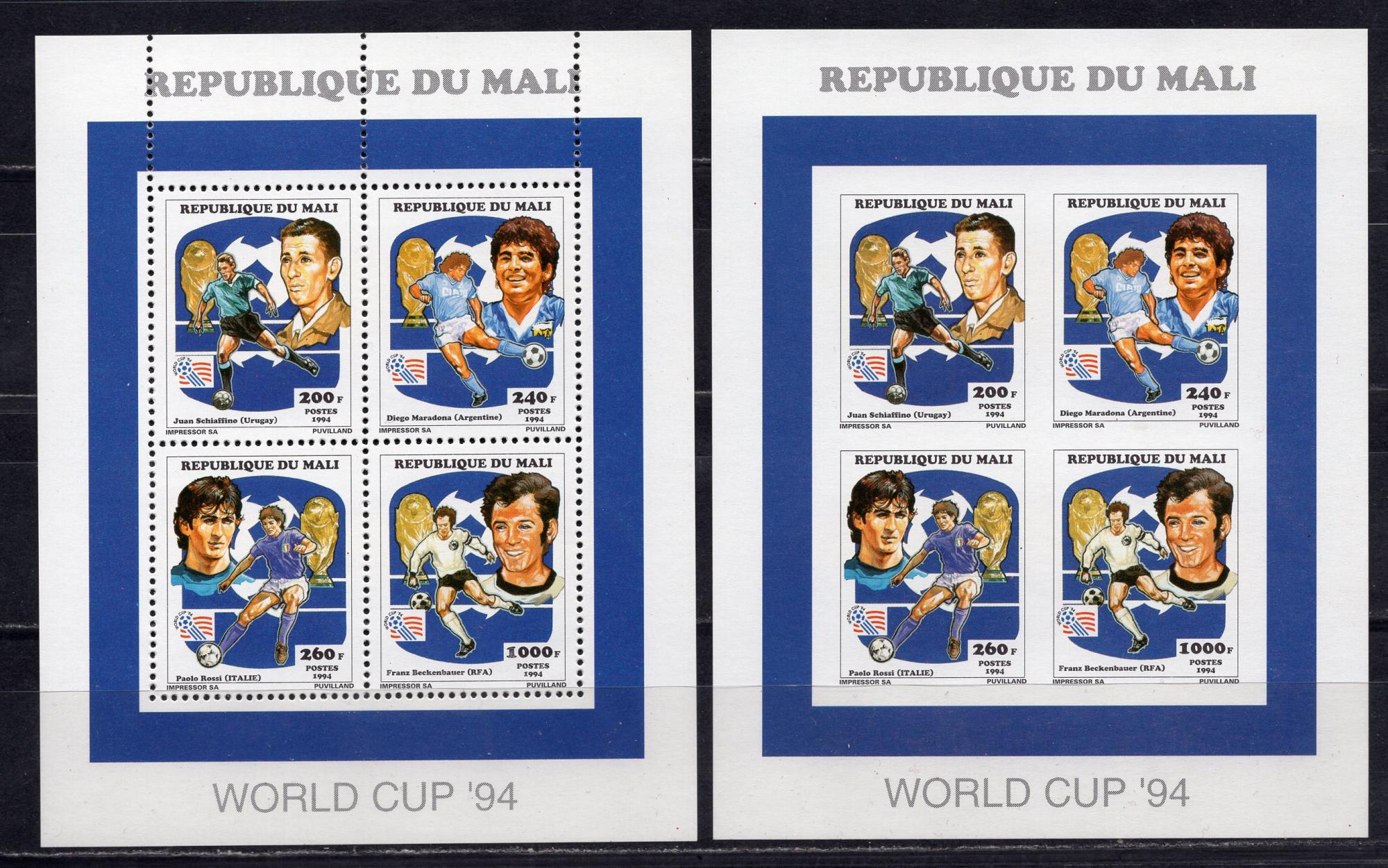 Почтовые марки. Мали, 1994 г. Футбол. №1196А-99А, 1196В-99В. МЛ. (Mi 32.0 e)