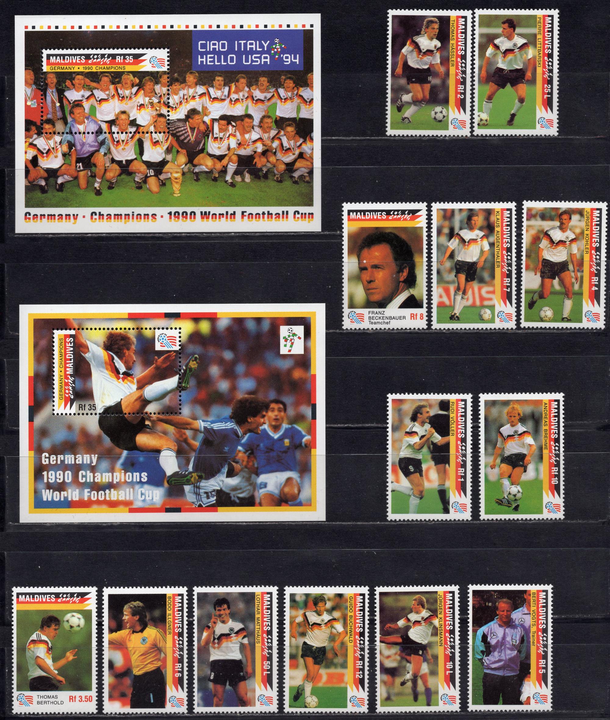 Почтовые марки. Мальдивы, 1992 г. Футбол. №1758-1770, Бл. 236, 237. (Mi 27.0 e)