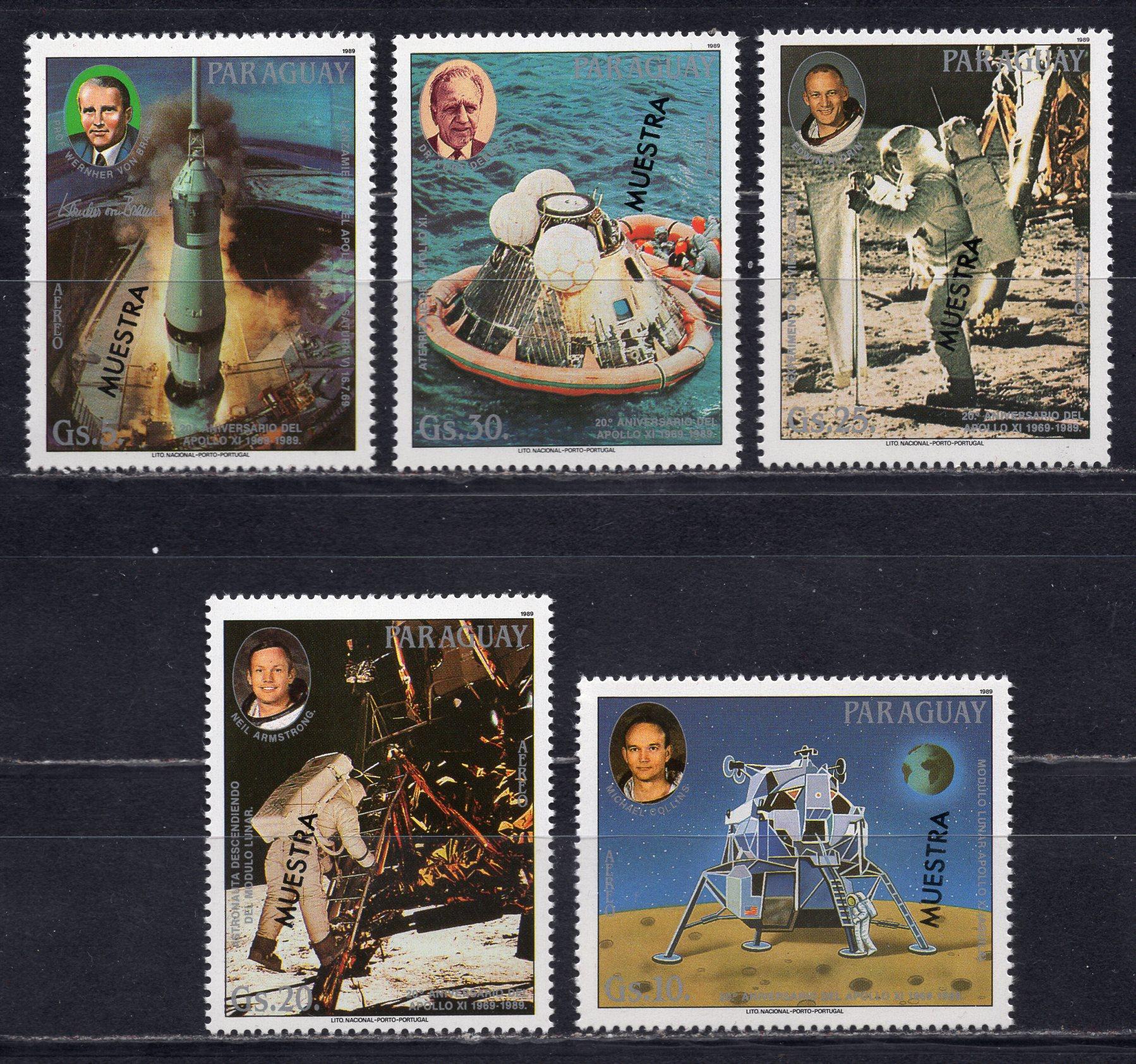 Почтовые марки. Парагвай, 1989 г. №4328-4332. Космос. MUESTRA. (Mi 12.0 e)