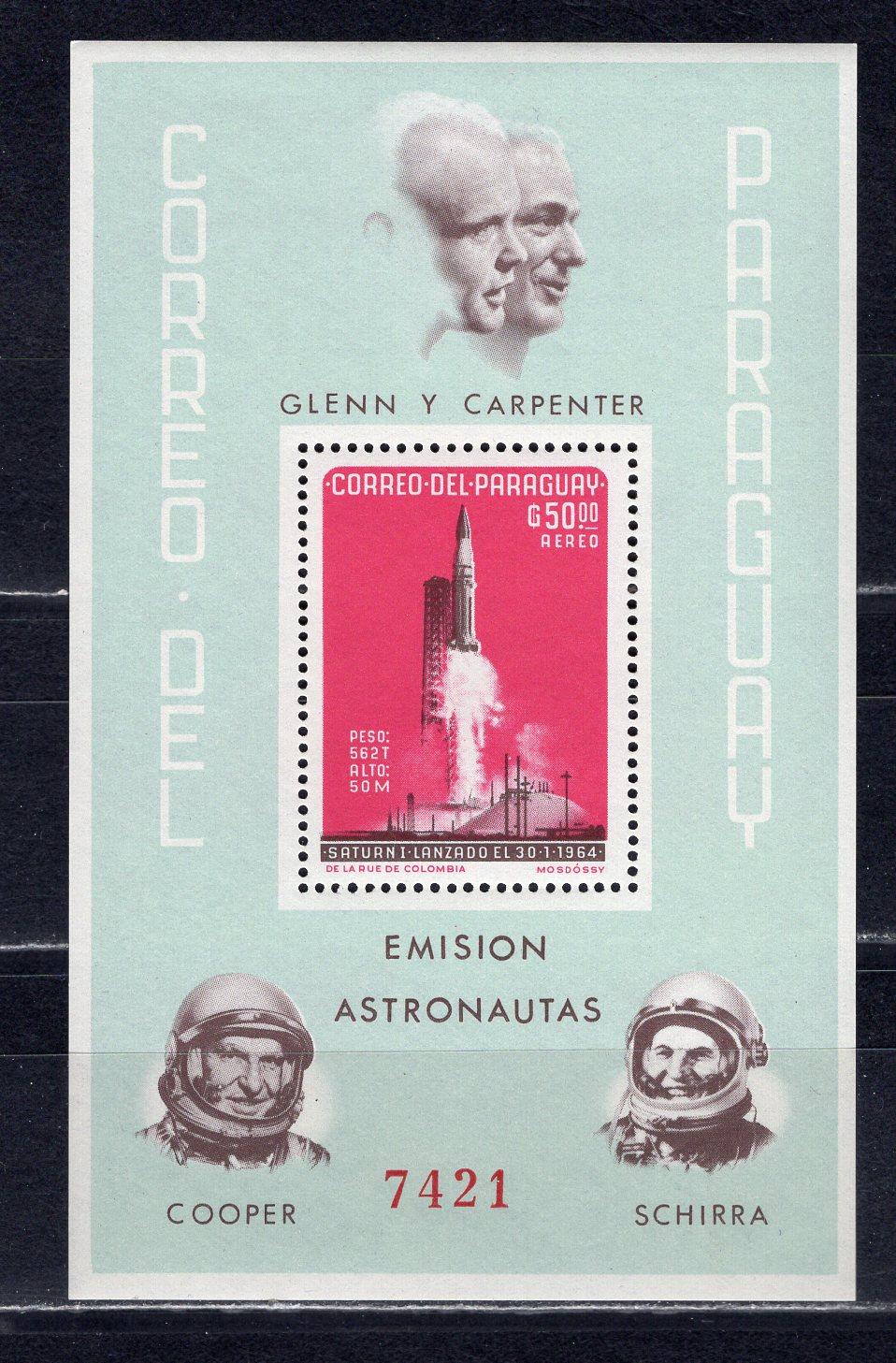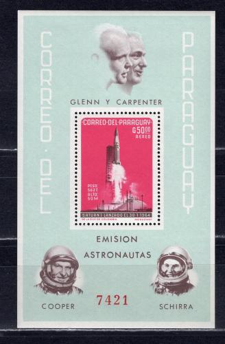 Почтовые марки. Парагвай. 1964г. Космос. Астронавты. Блок №56 (Mi: 25.00 Евро)