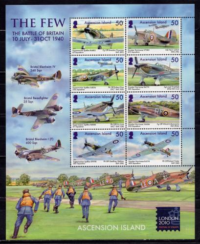 Почтовые марки. О-ва Вознесения, 2010 г. 70-я годовщина воздушного сражения за Англию: истребители. №1110-1117. МЛ. (Mi 16.0 e)