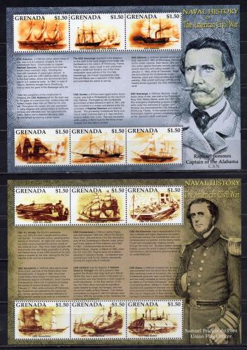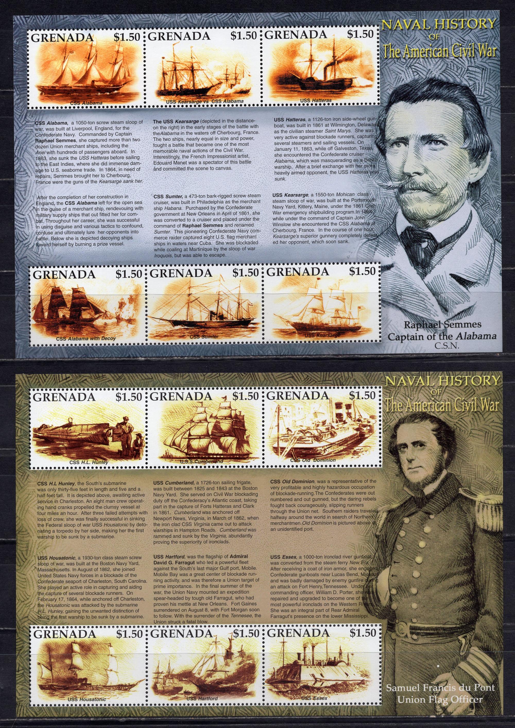 Почтовые марки. О. Гренада, 2002 г. Военно-морская история Гражданской войны в США. №4938-4949. МЛ.