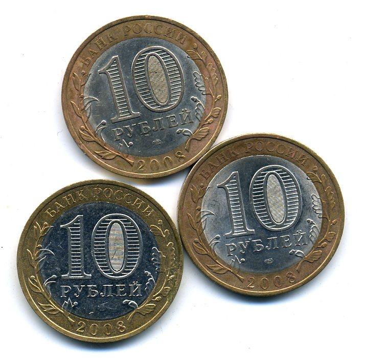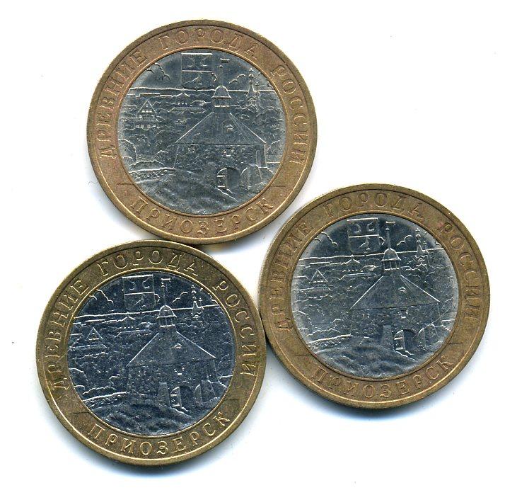Монеты России. 10 рублей 2008 г. Приозерск. 3 шт.