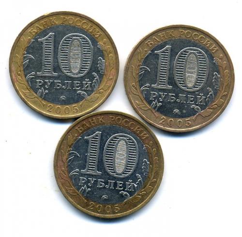 Монеты России. 10 рублей 2005 г. Калининград. 3 шт.