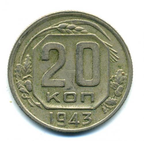 Монеты СССР. 20 копеек 1943 г.