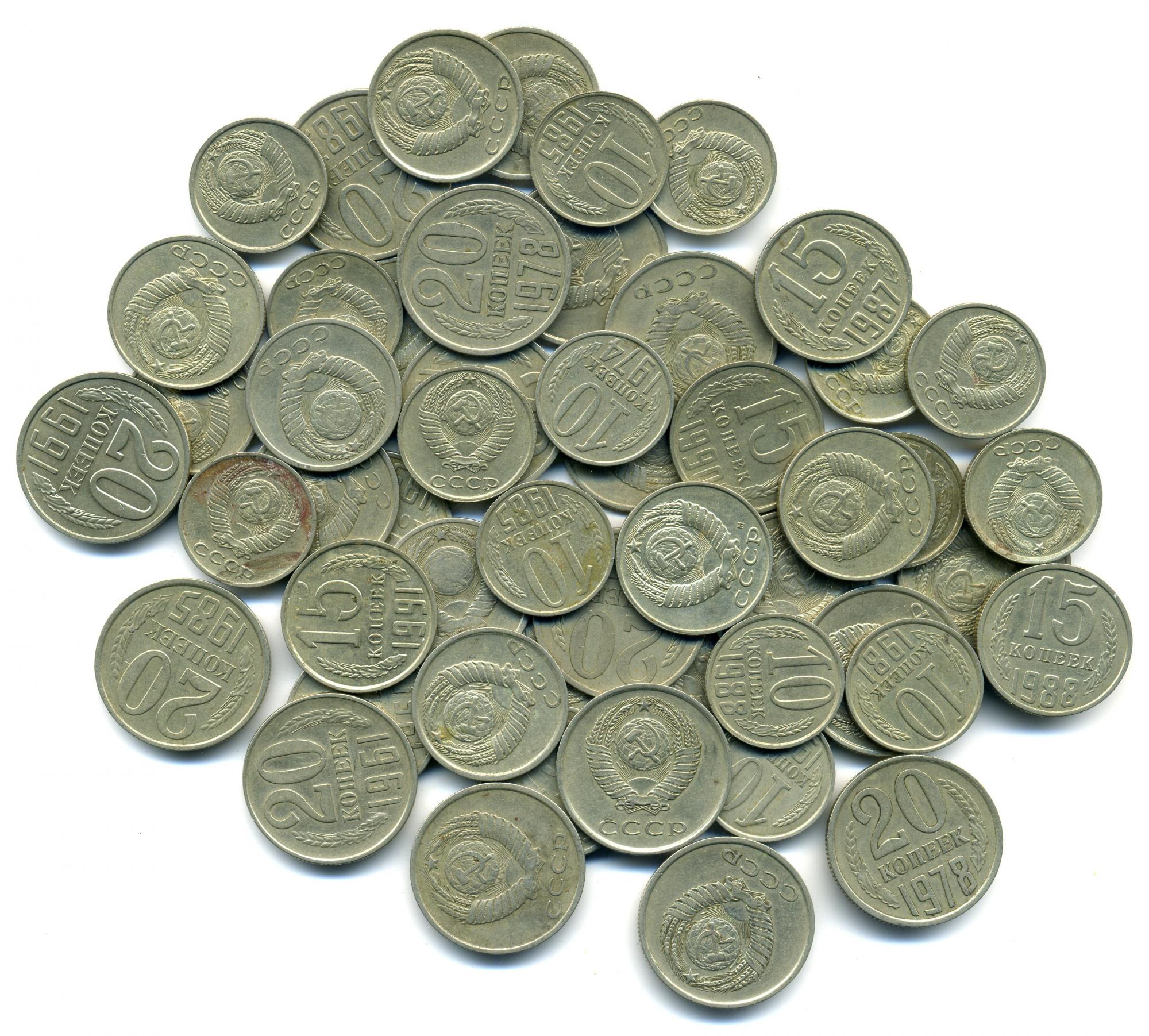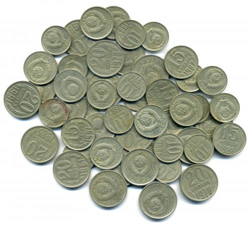 Монеты СССР. 10,15 копеек 1961-1991 г. 50 шт.