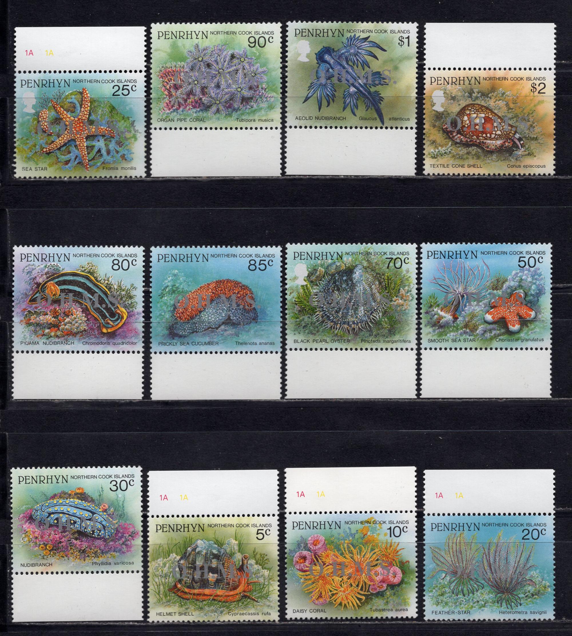 Почтовые марки. О. Пенрин, 1998 г. №43-55 DM. Стандарт. Надпечатка. Морская жизнь.