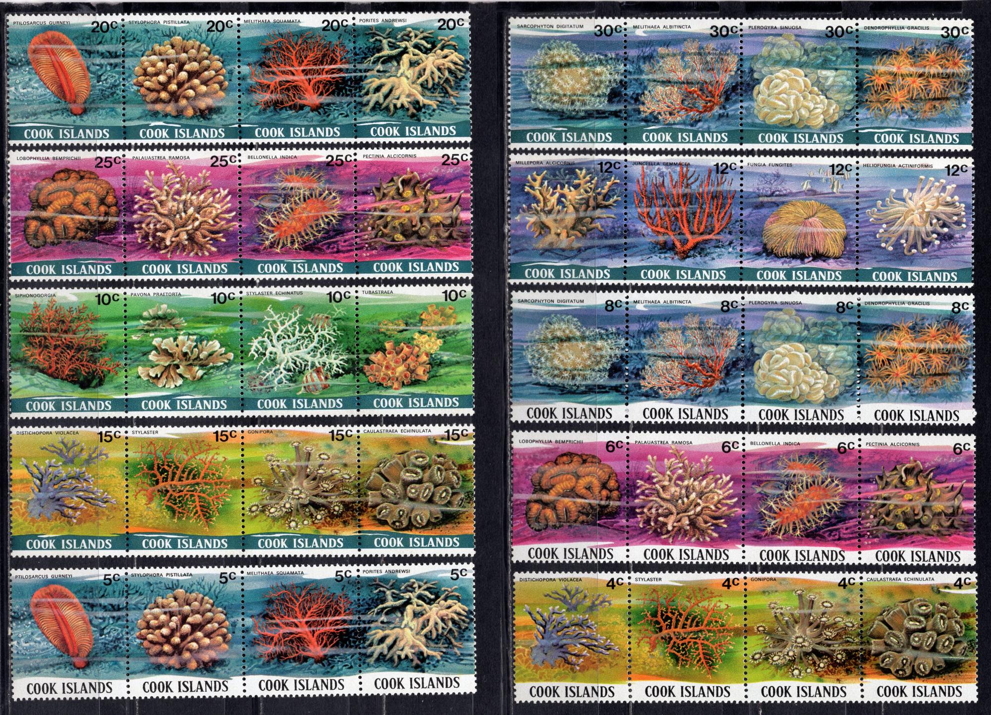 Почтовые марки. О. Кука, 1980 г. Кораллы. Стандарт. Комплект. №691-762. (в сцепках по 4 марки). (Mi 78.0 e)