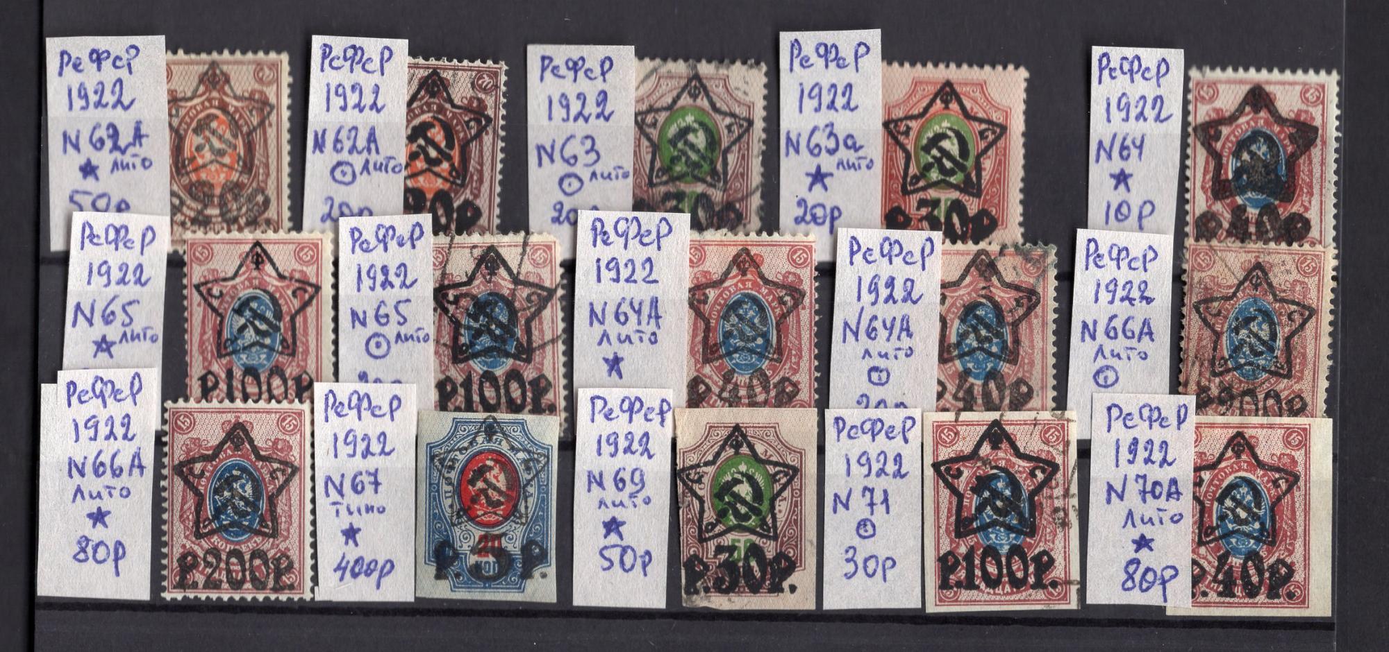 Почтовые марки. РСФСР, 1921-1922 г. Стандарт. Надп. Звезда. Варианты. № 62-67 etc.
