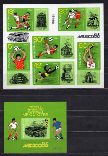 Почтовые марки. Болгария, 1986 г. Футбол. №3473В-3478В. Бл. 166В. Безз. (Mi 27.0 e)
