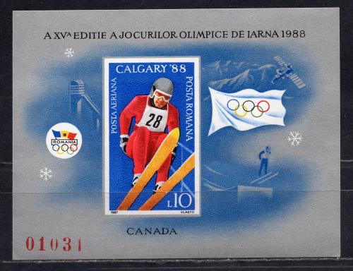 Почтовые марки. Румыния. 1987г. Олимп.игры в Калгари. Блок №238в. Беззубц. (Mi 25.0 e)