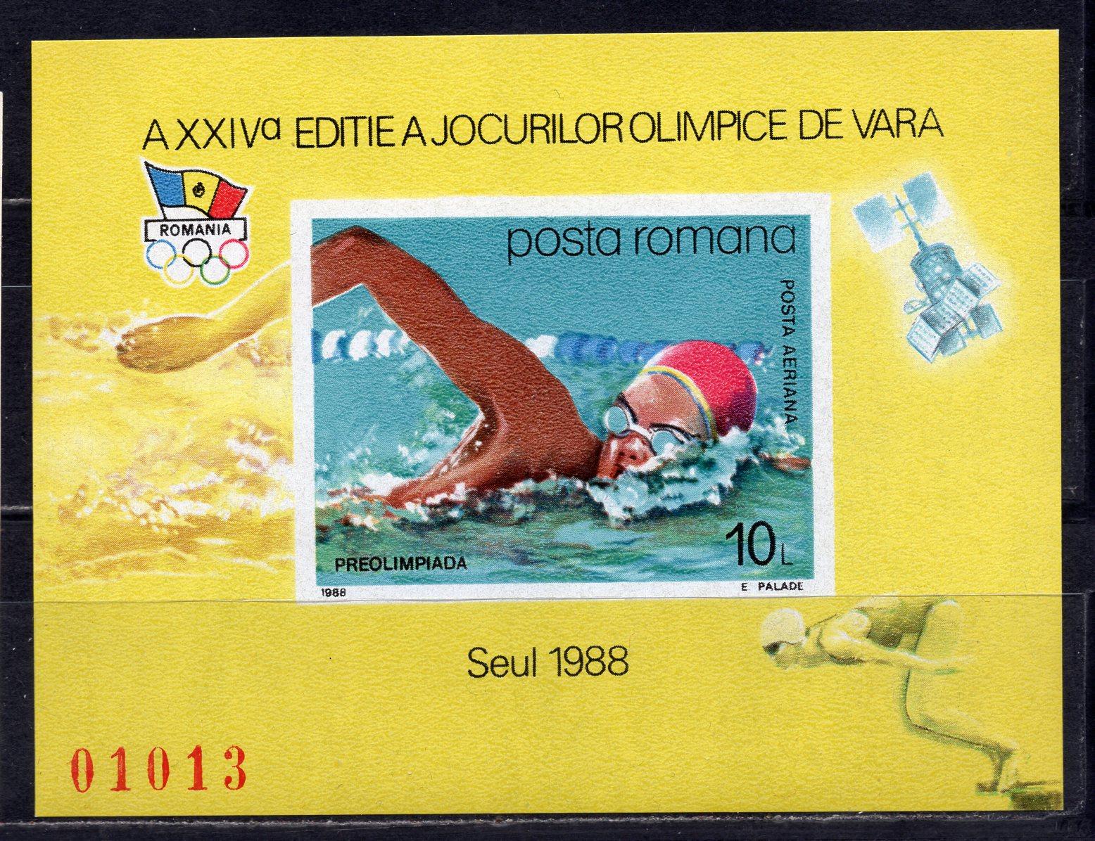 Почтовые марки. Румыния. 1988г. Олимп.игры в Сеуле. Блок №243в. Беззубц. (Mi 25.0 e)