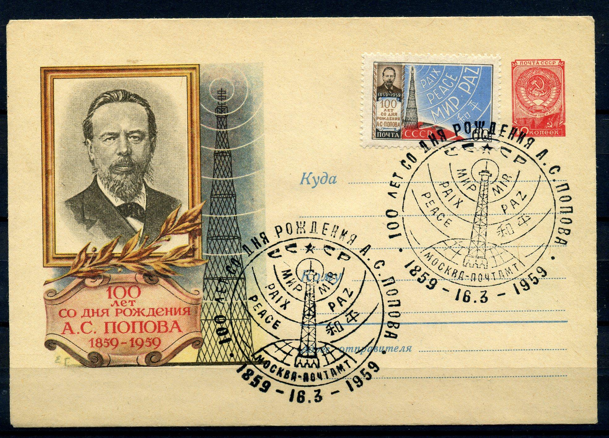 ХМК с маркой и СГ. СССР 1969 г. 100 лет со ДР А.С. Попова. КО.