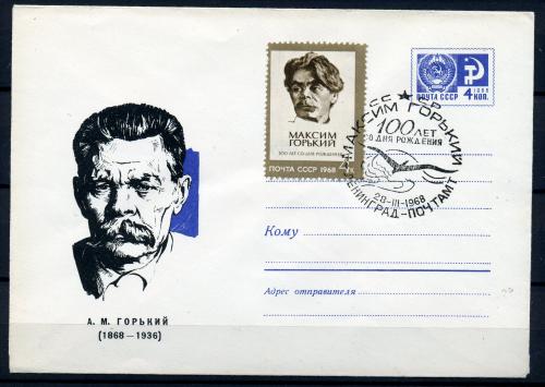 ХМК с маркой и СГ. СССР 1968 г. 100 лет со ДР М.Горького. КО.