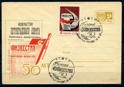 ХМК с маркой и СГ. СССР 1967 г. 50 лет газете "Известия". КО.