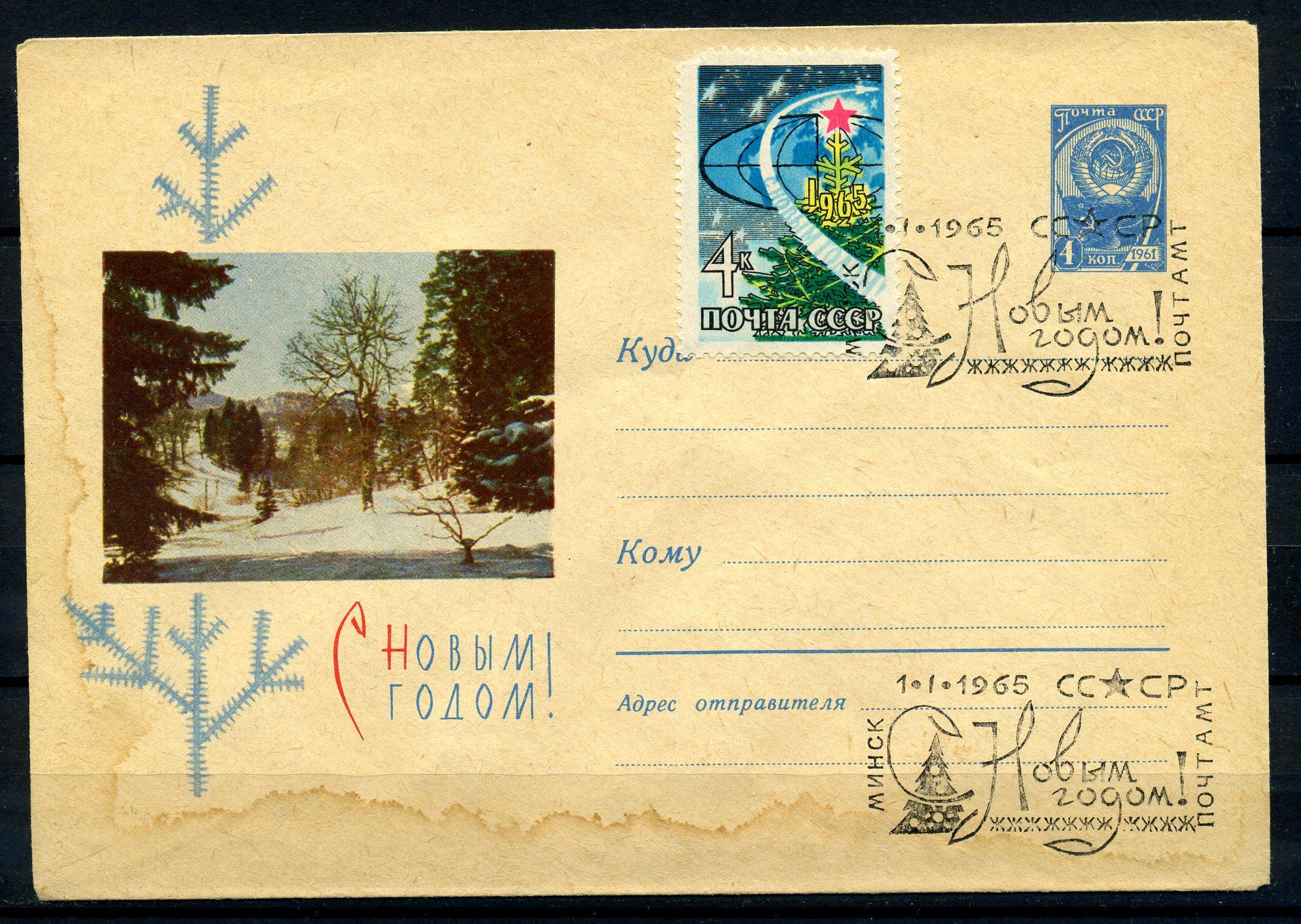 ХМК с маркой и СГ. СССР 1965 г. С Новым годом! КО.