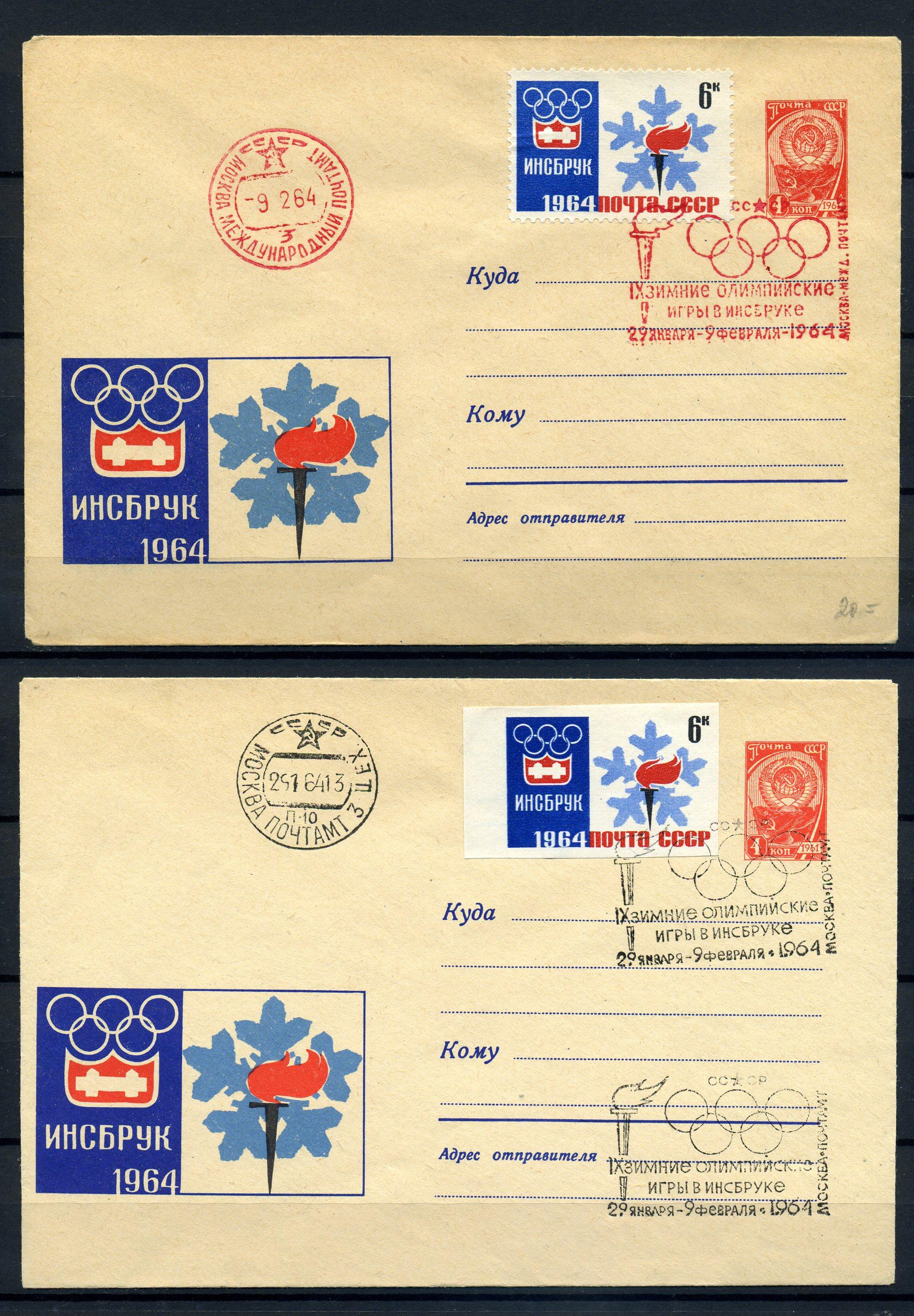 ХМК с маркой и СГ. СССР 1964 г. IX Зимние Олимпийские игры в Инсбруке. КО.